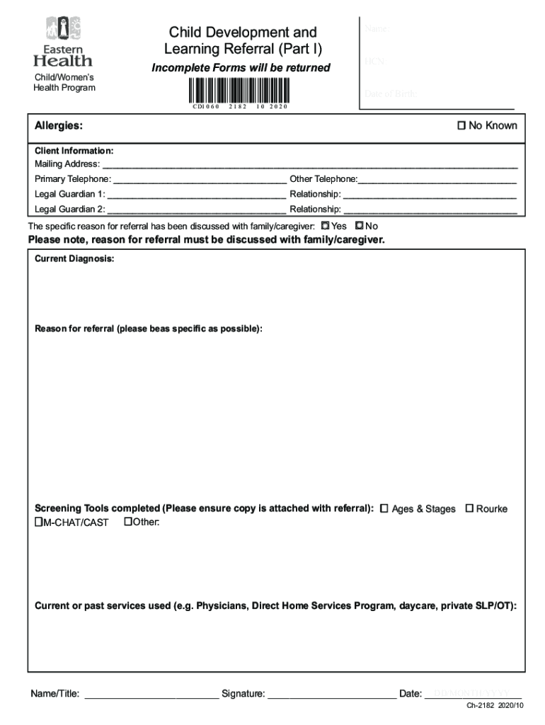 Get the free Ch-2182 Child Development and Learning Referral.cdr