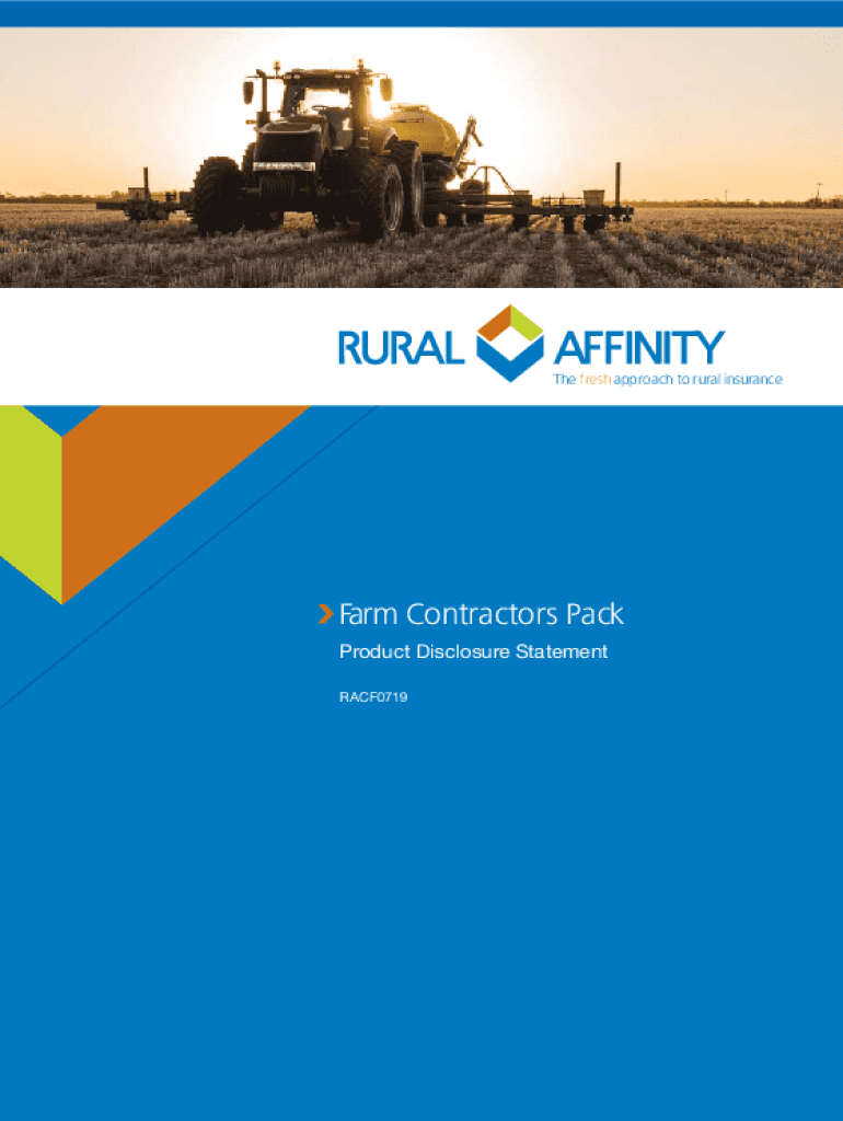 The fresh approach to rural insuranceFarm Contractors Pack Product Disclosure Statement RACF0719Thankyou For choosing to insure with Rural Affinity What We would like You to do 1. Please take the