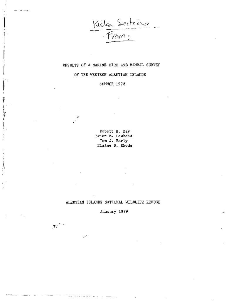 RESULTS OF A MARINE BIRD &\'LD MAMMAL SURVEY