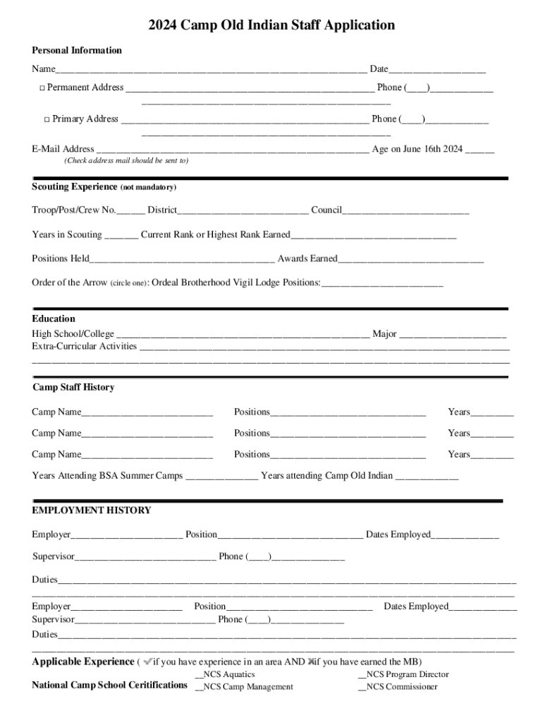 On your mobile device, use the pdfFiller mobile app to complete and sign 2024 camp old indian. Visit our website (https://edit-pdf-ios-android.pdffiller.com/) to discover more about our mobile applications, the features you'll have access to, and how to get started.
