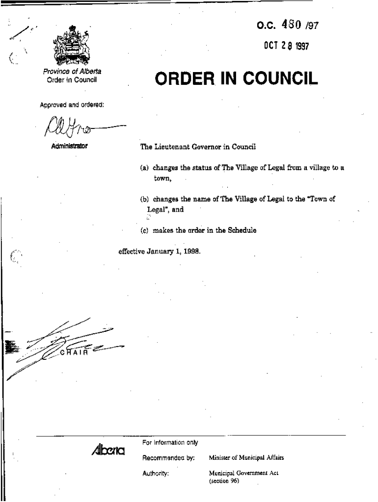 Approved and ordered:Administrator Lieutenant Governor in Council