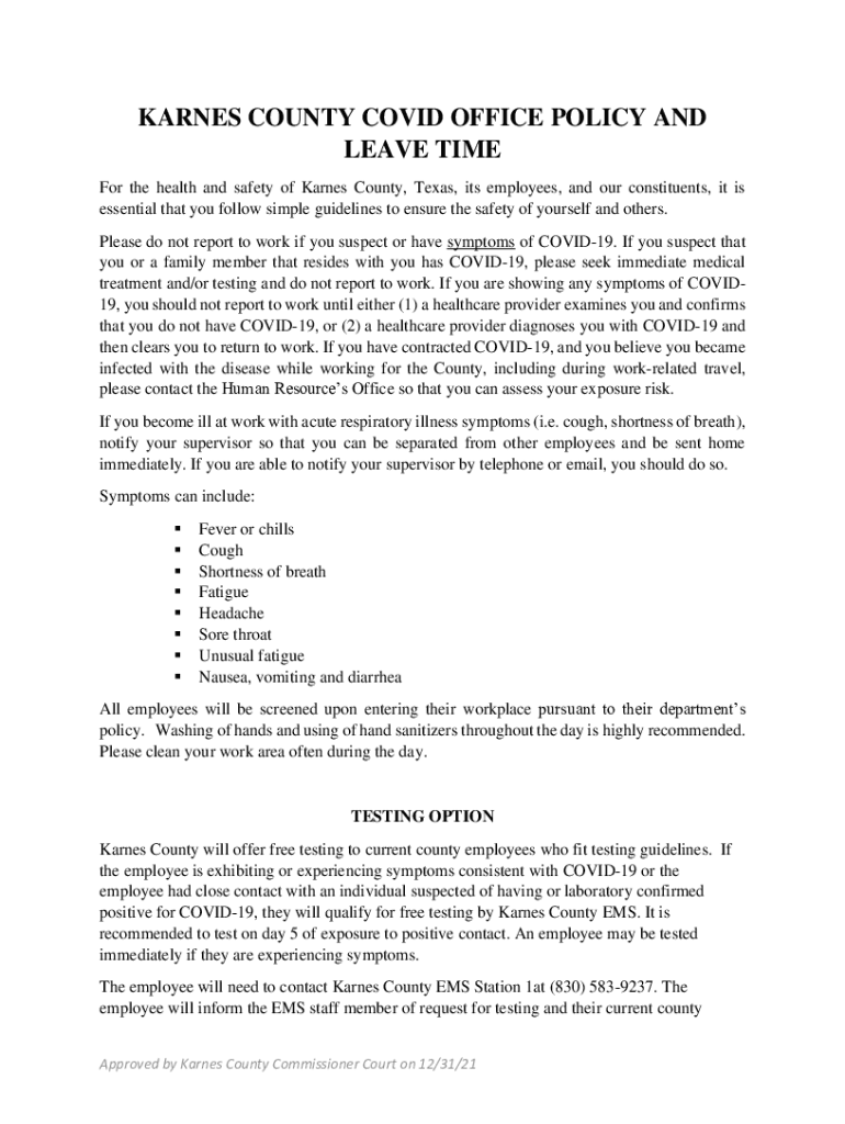 BARNES COUNTY COVID-19 OFFICE POLICY AND