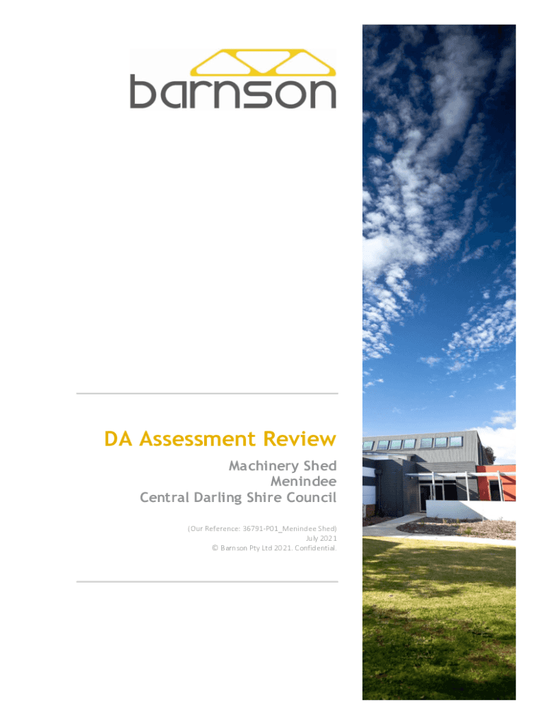 DA Assessment Review Machinery Shed Menindee Central Darling Shire Council (Our Reference: 36791P01_Menindee Shed) July 2021 Barnson Pty Ltd 2021. Confidential.Disclaimer This report has been prepared