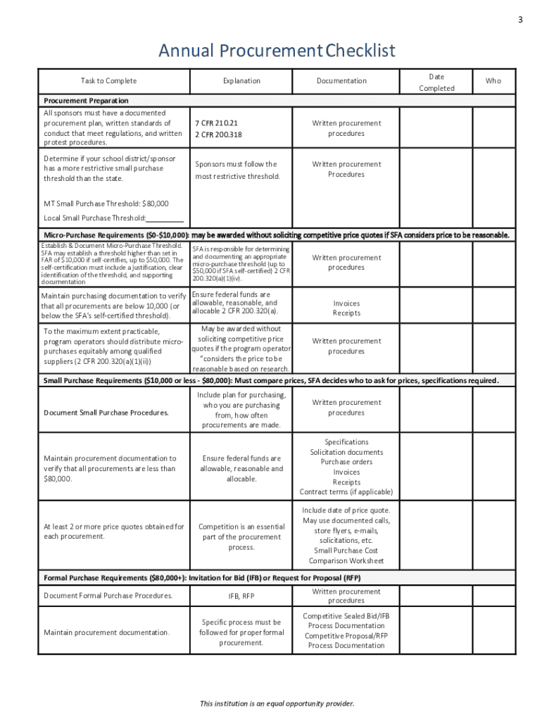 School Nutrition ProgramsThis institution is an equal opportunity provider.2Table of ContentsAnnual Procurement Checklist..................................................................................3