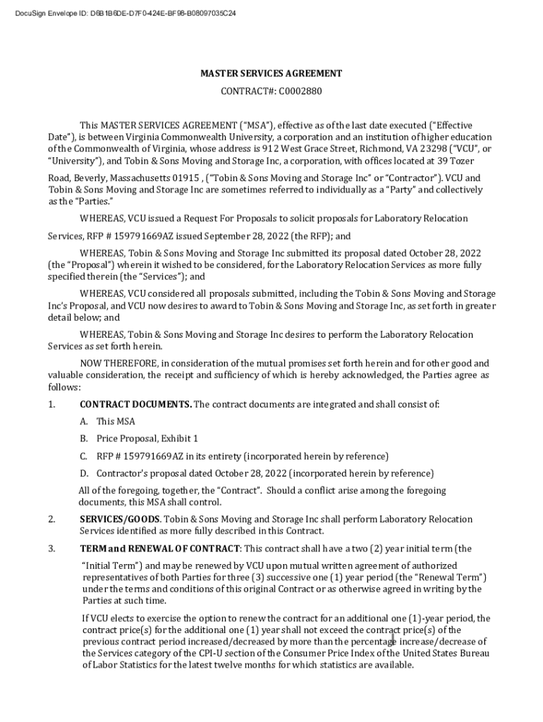 DocuSign Envelope ID: D6B1B6DED7F0424EBF98B08097035C24MASTER SERVICES AGREEMENT