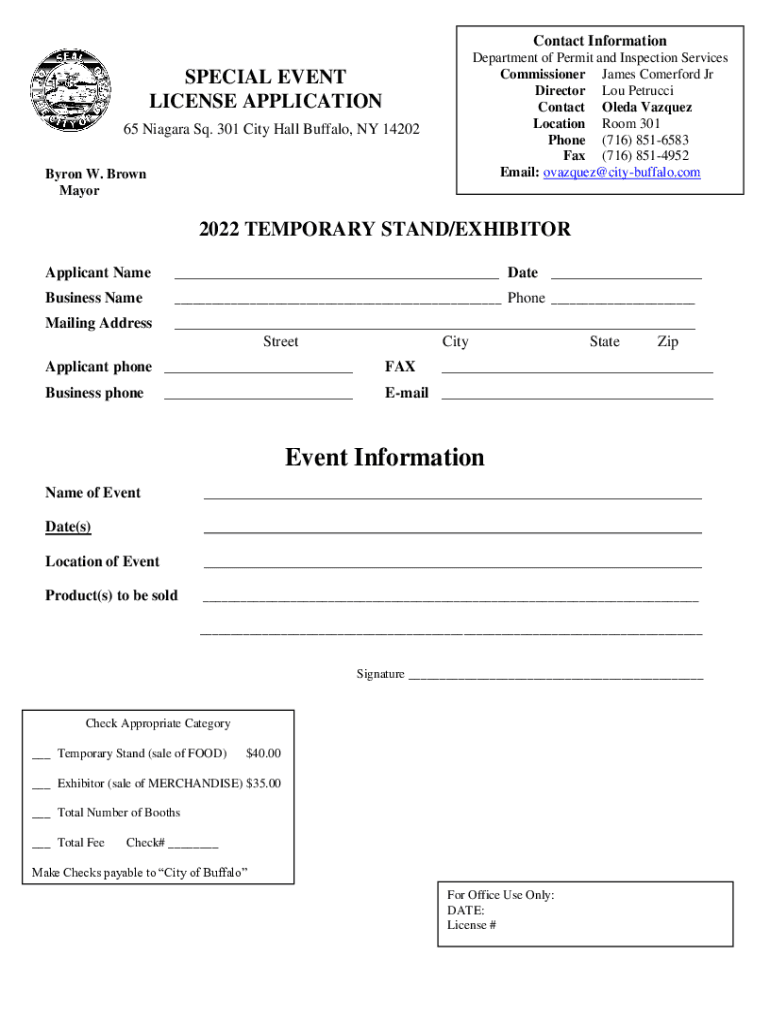 Submit the filled-out form to the mayor's office along with any required supporting documents or fees.
