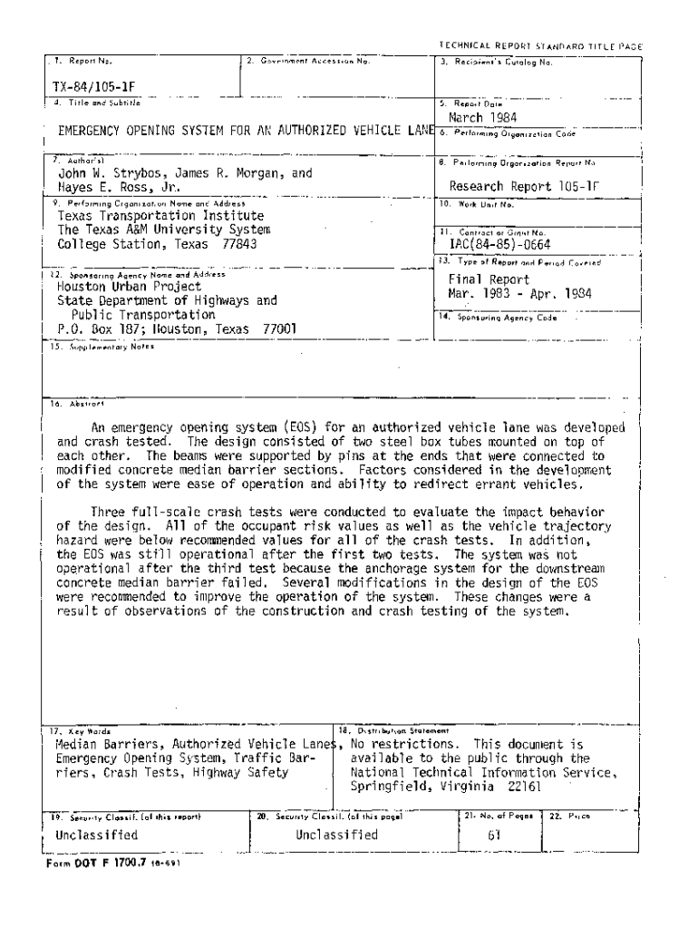 Get the free Emergency Opening System for an Authorized Vehicle Lane - static tti tamu