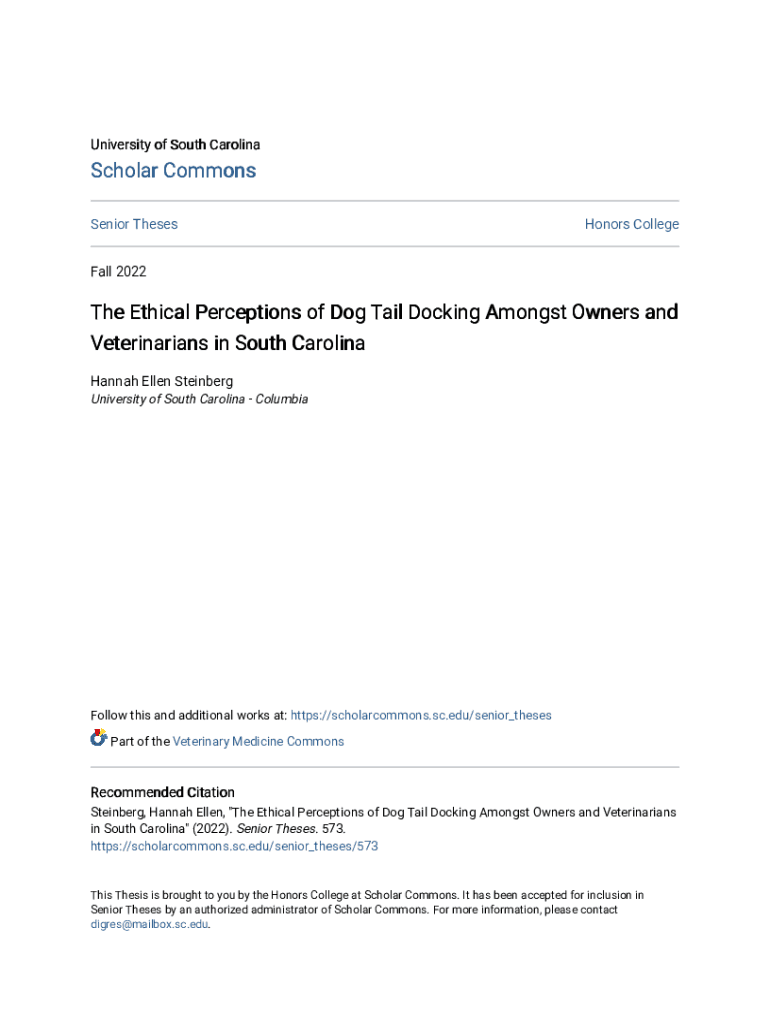 Senior ThesesHonors Collegial 2022The Ethical Perceptions of Dog Tail Docking Amongst Owners and