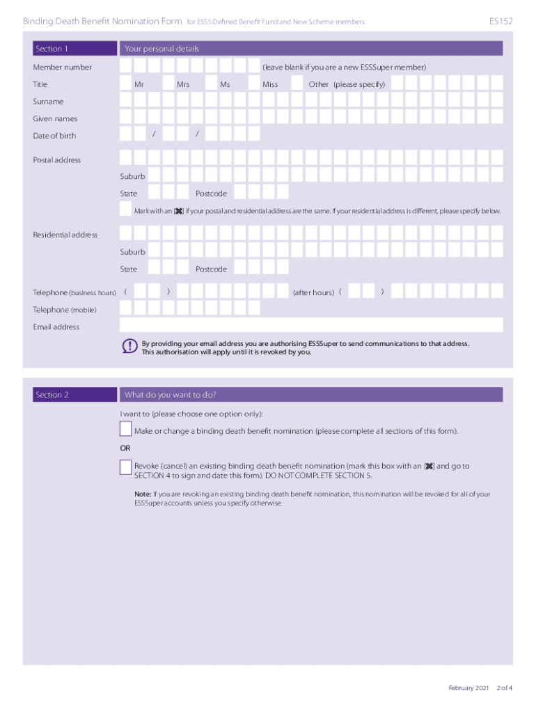 CLICK HERE TO SAVE FORMES152Binding Death Benefit Nominationfor ESSS Defined Benefit Fund and New Scheme members (Not for Transport Scheme members)Who should use this form? You should complete this