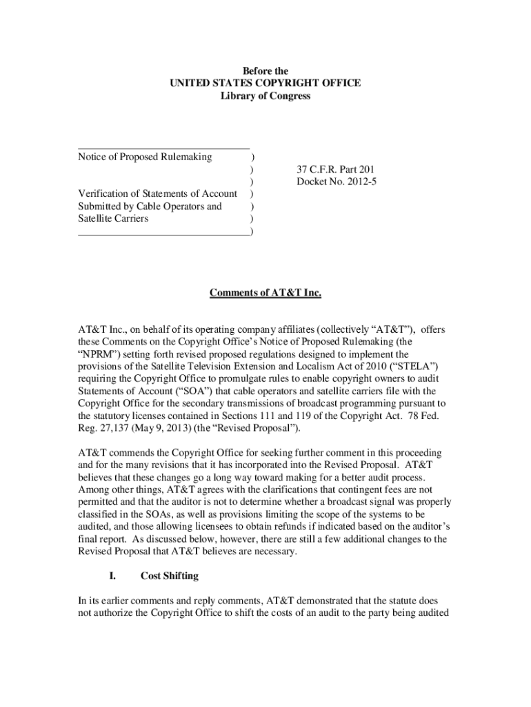 Before the UNITED STATES COPYRIGHT OFFICE Library of Congress___ Notice of Proposed Rule making) )) Verification of Statements of Account) Submitted by Cable Operators and) Satellite Carriers) ___)37