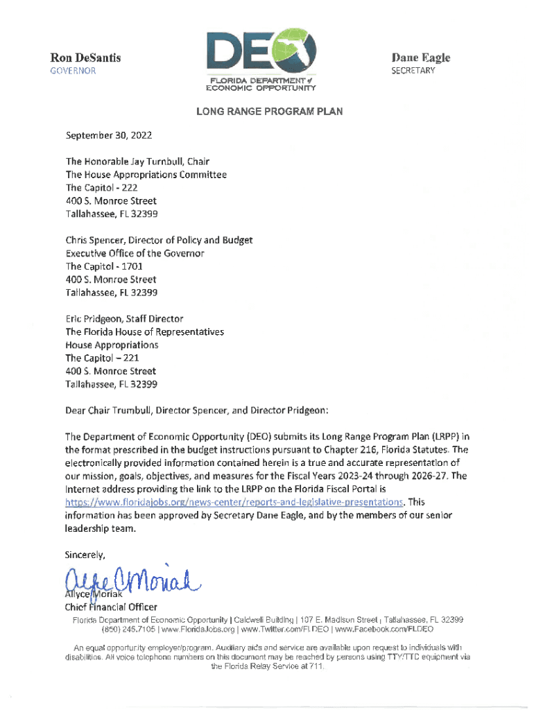 FLORIDA DEPARTMENT OF ECONOMIC OPPORTUNITYLONG RANGE