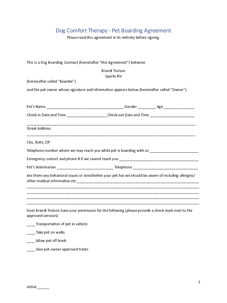Get the free Pet Boarding Agreement - Dog Comfort Therapy