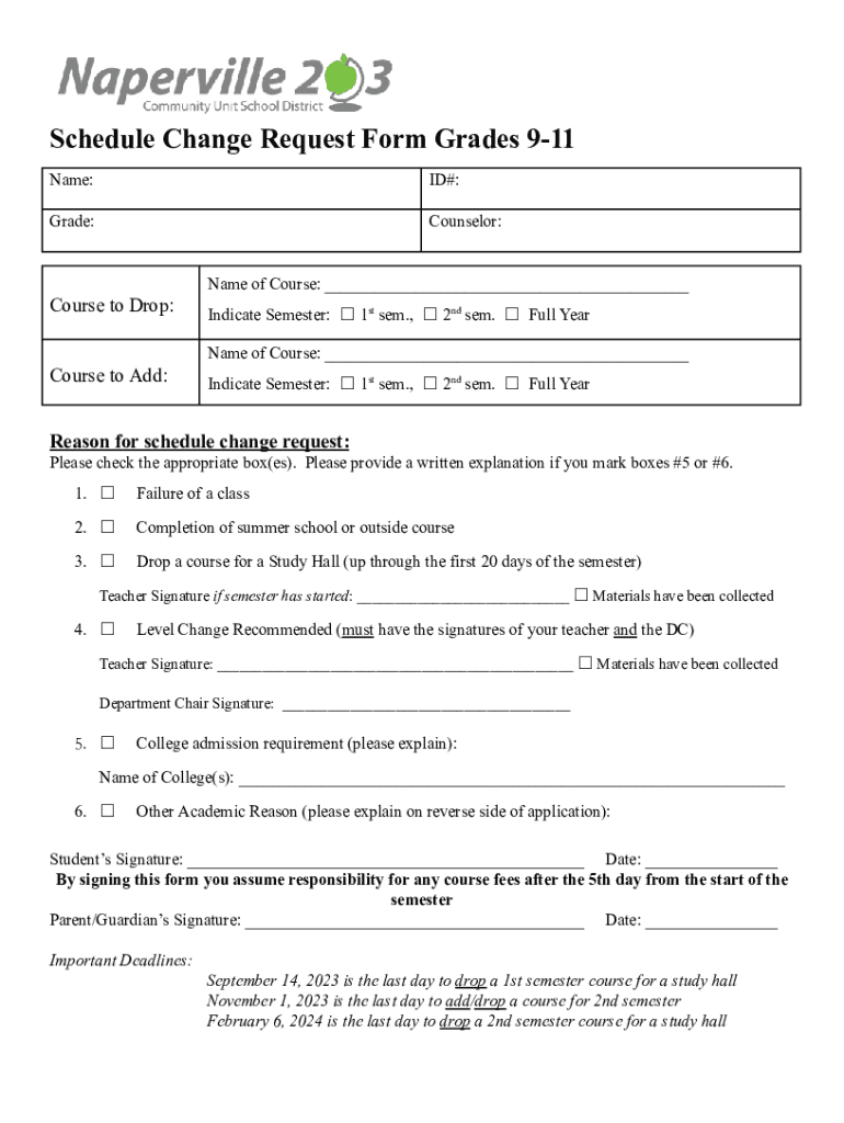 Students who face conflicts between classes, exams, or other academic obligations may need a schedule change request form.