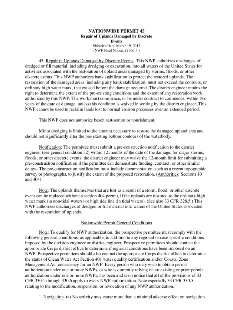 Get the free NATIONWIDE PERMIT 45 - Repair of Uplands Damaged by ...