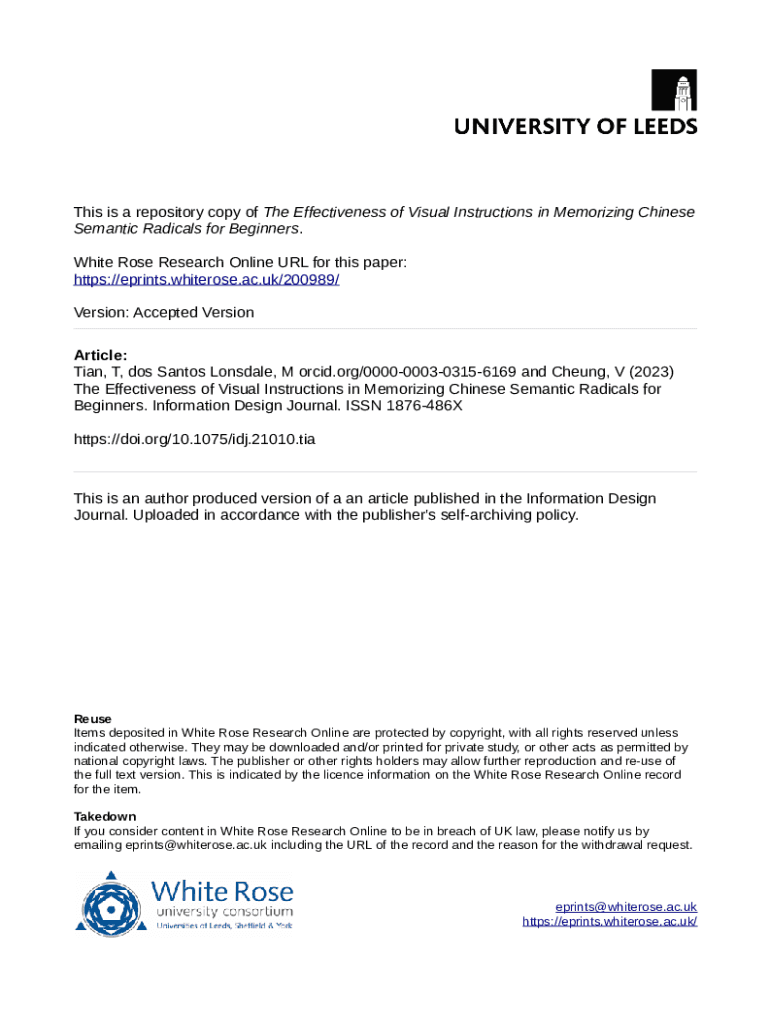 This is a repository copy of The Effectiveness of Visual Instructions in Memorizing Chinese