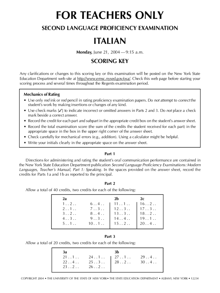 SECOND LANGUAGE PROFICIENCY EXAMINATIONITALIAN