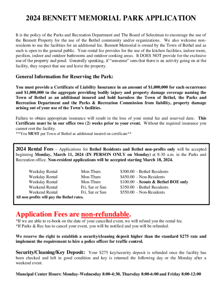 2024 BENNETT MEMORIAL PARK APPLICATION