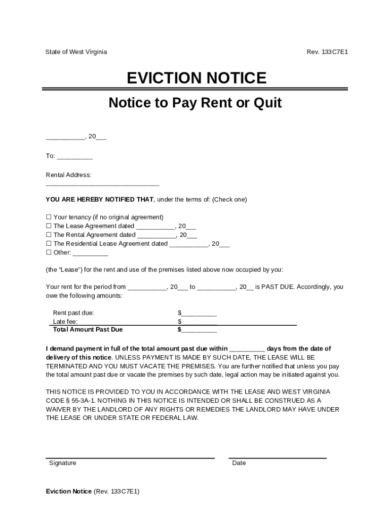 How should you fill out the West Virginia Eviction Notice to Quit - es template