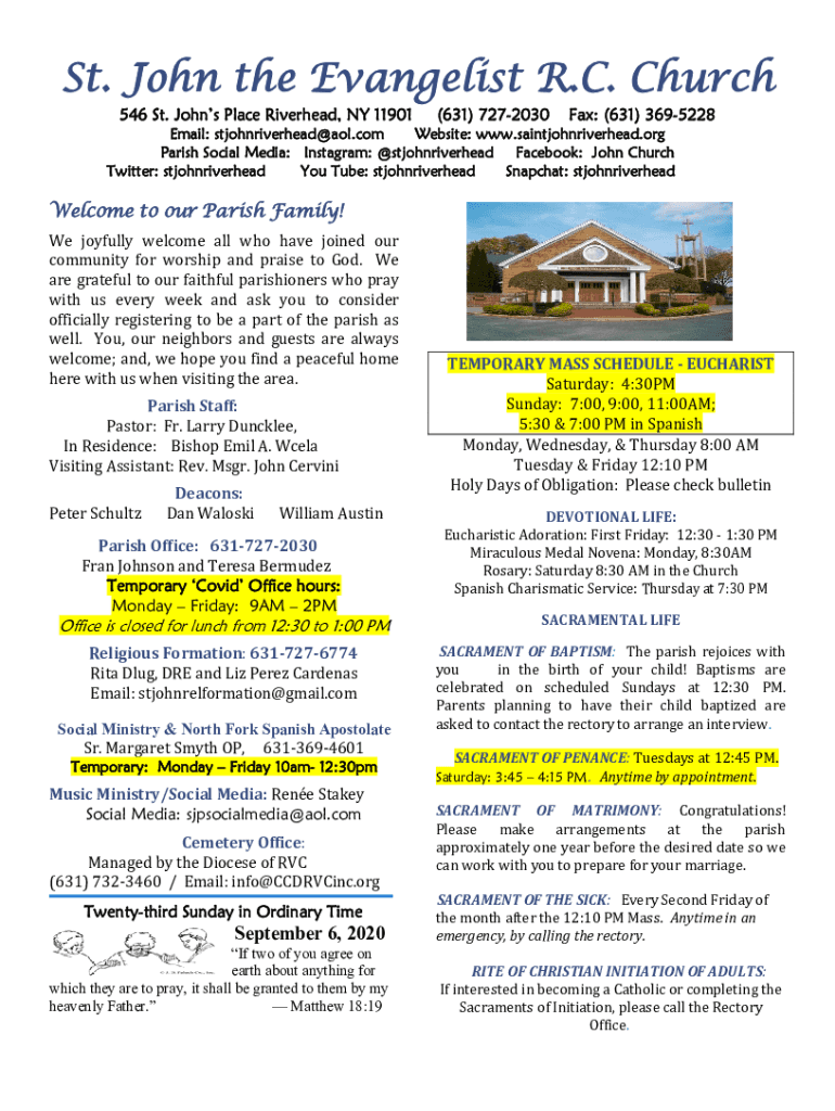 546 St. Johns Place River head, NY 11901(631) 7272030Fax: (631) 3695228Email: stjohnriverhead@aol.com