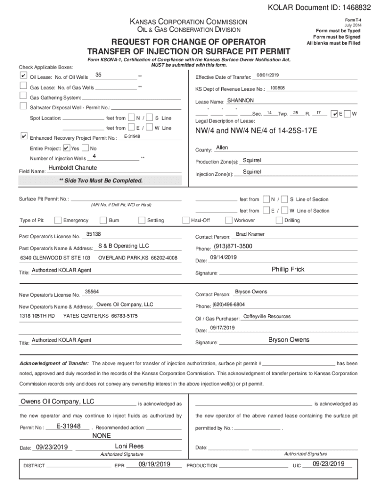 All blanks must be FilledREQUEST FOR CHANGE OF OPERATOR