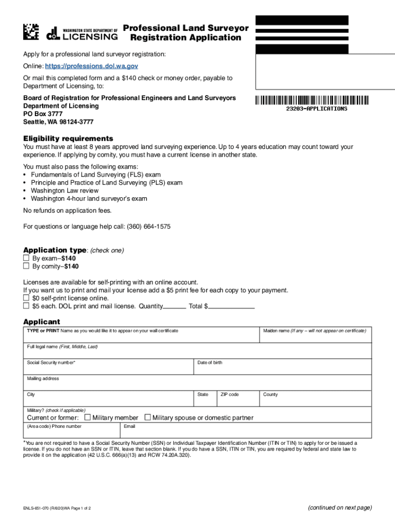 Get the free Apply for a professional land surveyor registration: