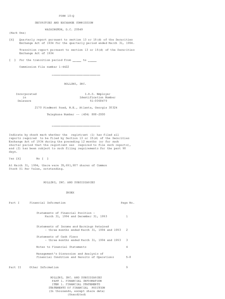 Get the free Exchange Act of 1934 For the quarterly period ended March 31, 1994