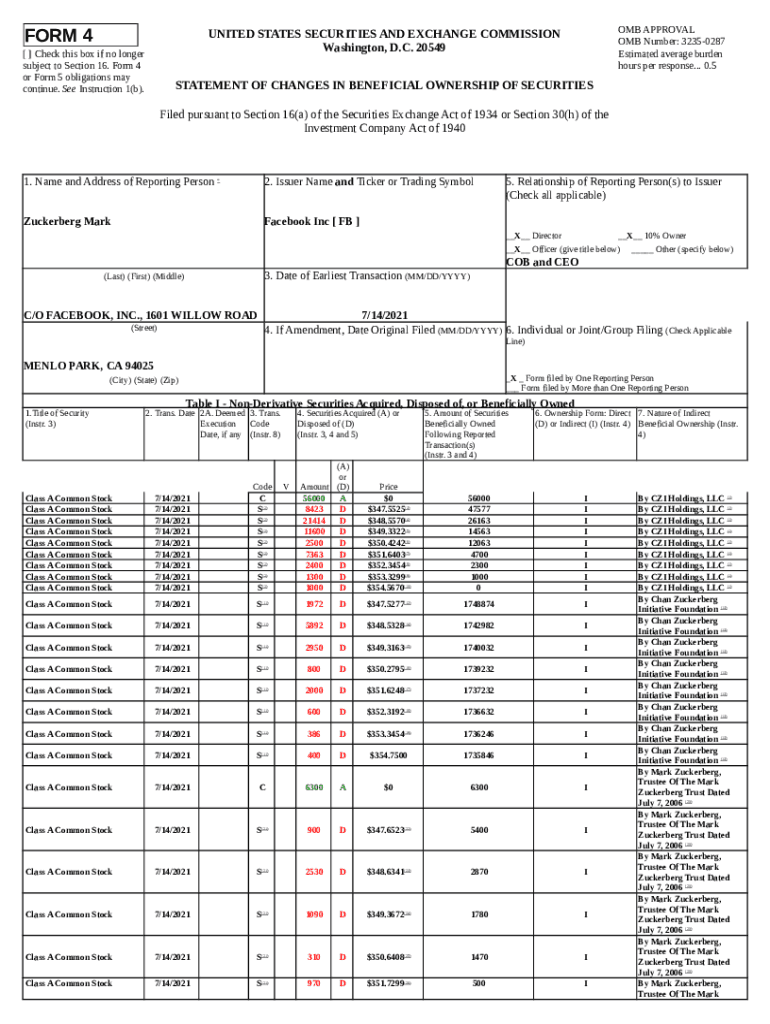 Instructions for the form Facebook Inc (: 4, Received: 07/14/2021 21:08:18)