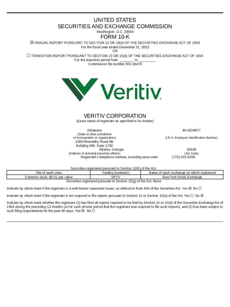 What is Veritiv Corp (: 10-K, Received: 02/28/2023 16 ... - cloudfront.net Form?