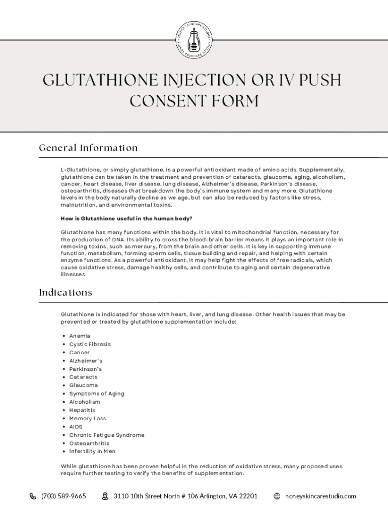 Get the free Glutathione Injection or IV Push Consent Form