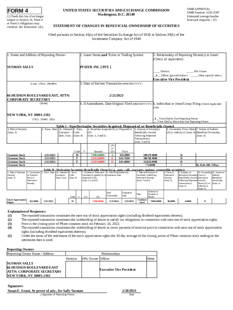 What is PFIZER INC (: 4, Received: 02/28/2023 17:59:17) Form?