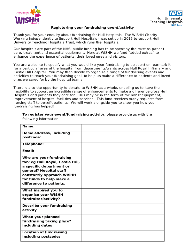 Instructions for the form Registering your fundraising activity or event