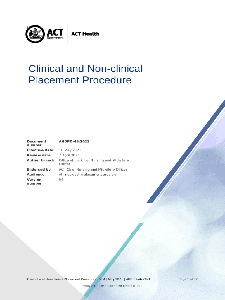 Frequently asked questions about the form Clinical and Non-clinical Placement Procedure