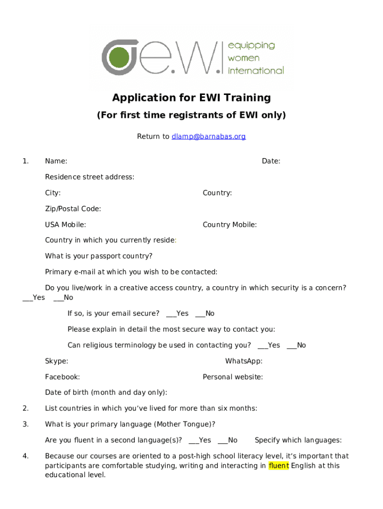 What is Application for EWI Training Form?