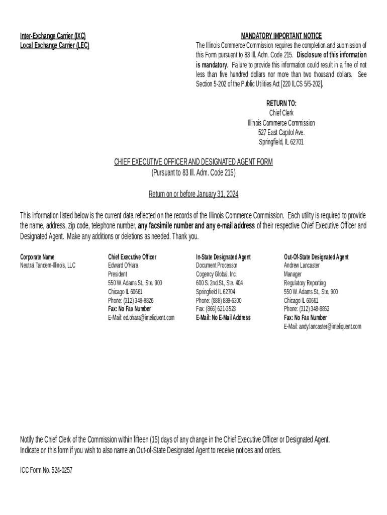 Instructions for the form Neutral Tandem-Illinois, LLC