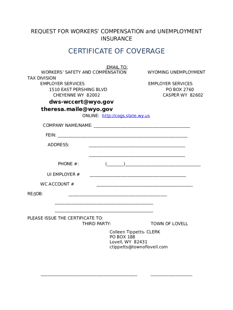 The WCUI Certificate of Coverage Application is a writable document required to be submitted to the relevant address in order to provide some info. It needs to be filled-out and signed, which is possible manually, or with the help of a particular software such as PDFfiller. This tool allows to complete any PDF or Word document right in the web, customize it according to your requirements and put a legally-binding electronic signature. Right away after completion, you can send the WCUI Certificate of Coverage Application to the appropriate individual, or multiple ones via email or fax. The editable template is printable as well because of PDFfiller feature and options proposed for printing out adjustment. In both digital and in hard copy, your form will have got clean and professional outlook. Also you can save it as the template for further use, so you don't need to create a new document from the beginning. Just customize the ready template.