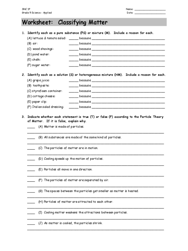 Anyone who is studying or working with matter and needs to classify it accurately is required to fill out the c classifying matter worksheet-2pdf.