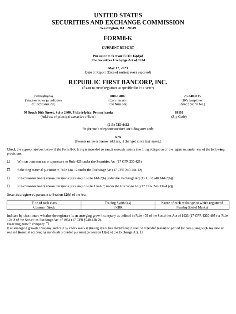 What is republic first bancorp, inc. - cloudfront.net Form?