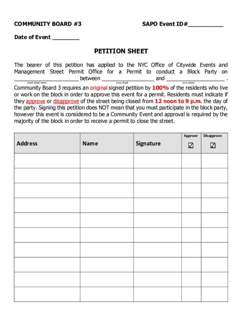 How to fill out block party petition template?