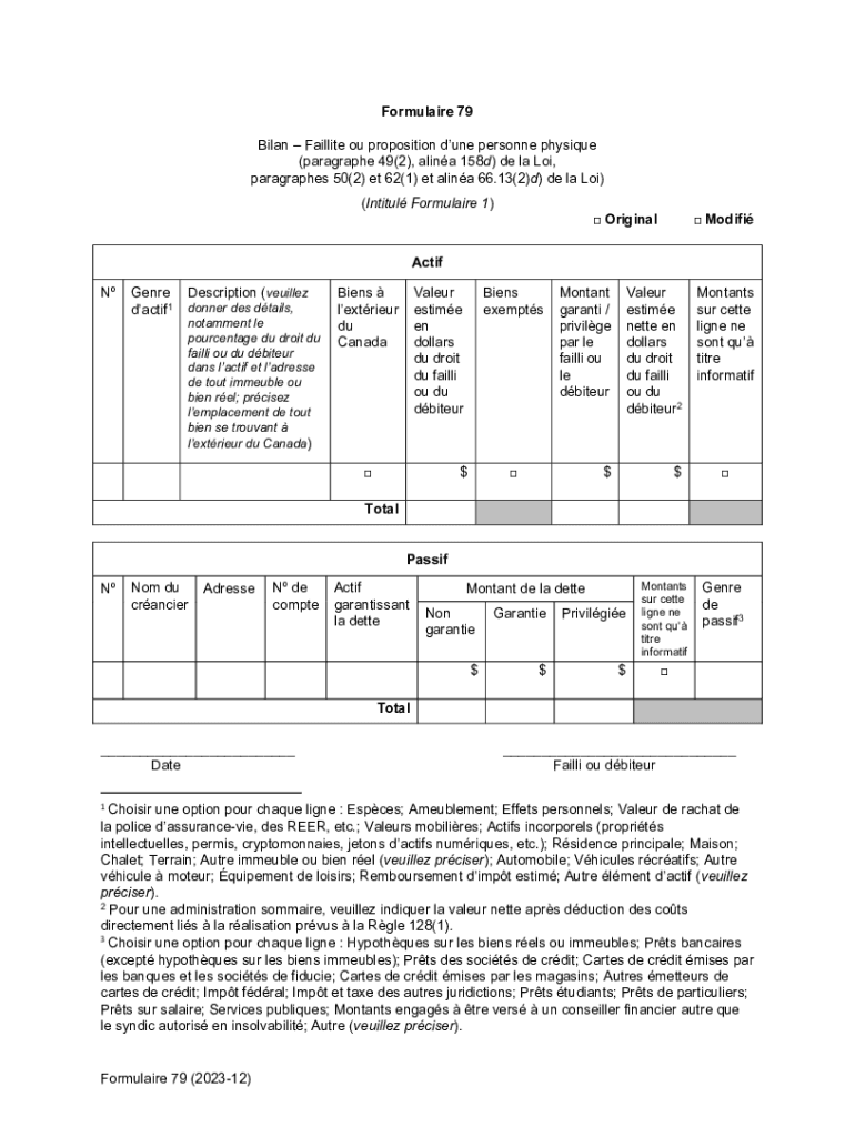 Obtenir le gratuit No division: District de: FORMULAIRE 79 Bilan - Faillite ...