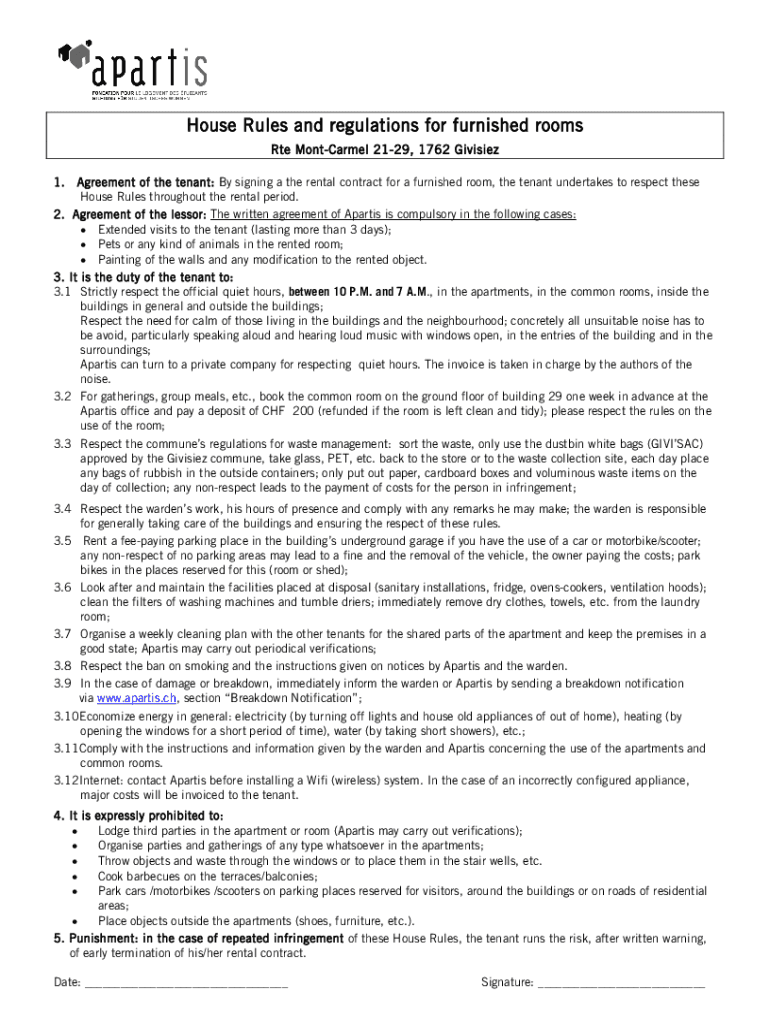 House Rules and regulations for furnished rooms