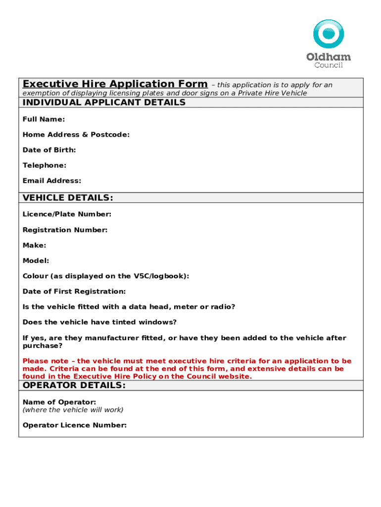 How to fill Private Hire Vehicle Plate Exemption Application word template