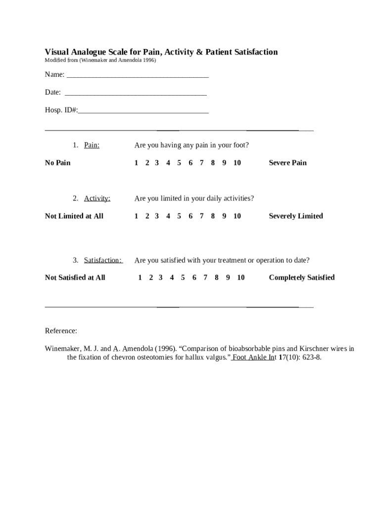How to fill out Visual Analogue Scale for Pain, Activity & Patient Satisfaction