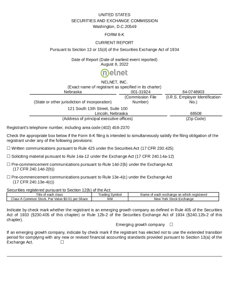 What is NELNET INC (: 8-K, Received: 08/08/2022 16:18:47) Form?