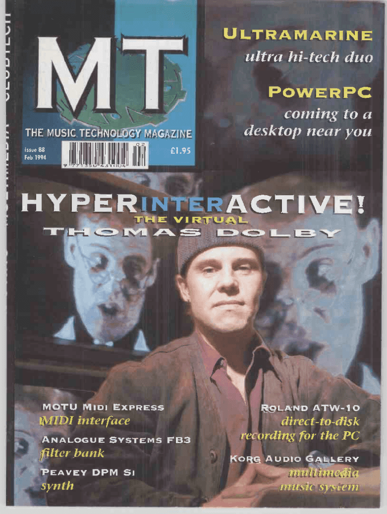 ULTRAMARINE ultra hi tech PowerPC MAGAZtalTHE MUSIC TECHNO corning to a desktop near you021.95Issue 88 Feb 19949 771 350 431 004HYPERMOTU MIDI EXPRESS MIDI interface ANALOGUE SYSTEMS FB3filter bank