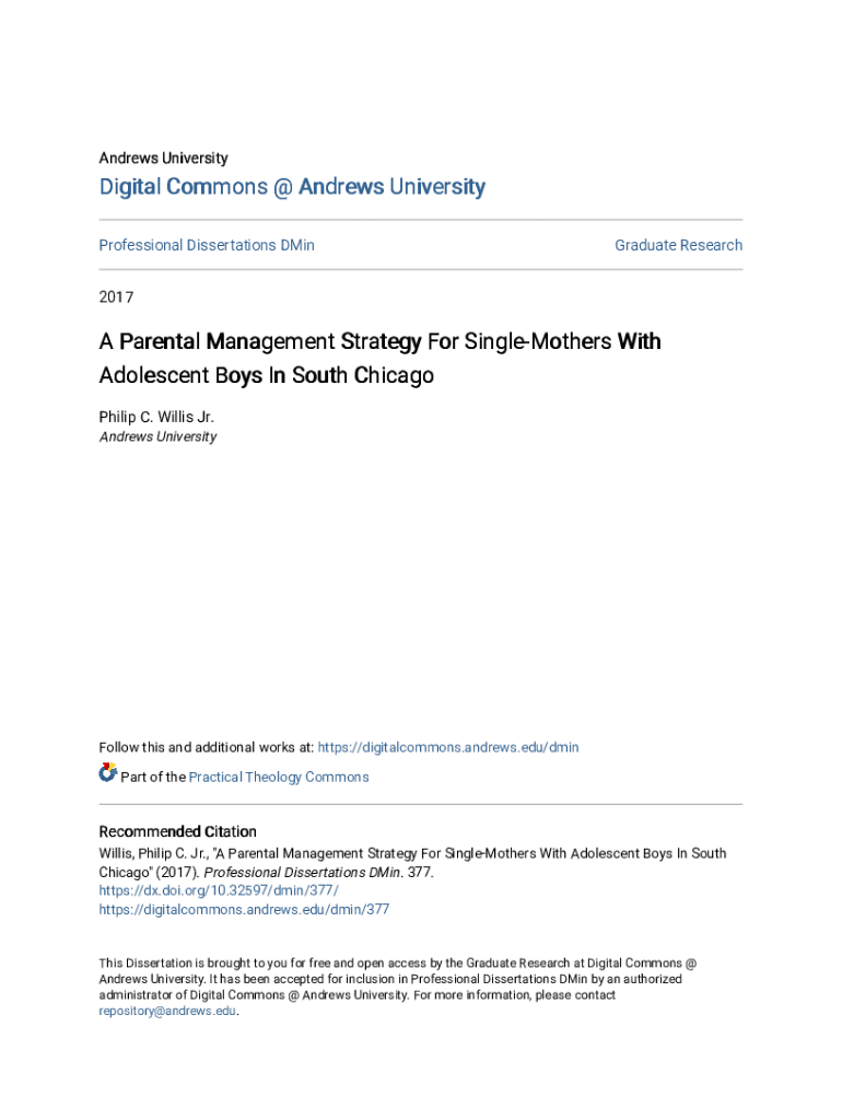 Professional Dissertations DMinGraduate Research2017A Parental Management Strategy For SingleMothers With