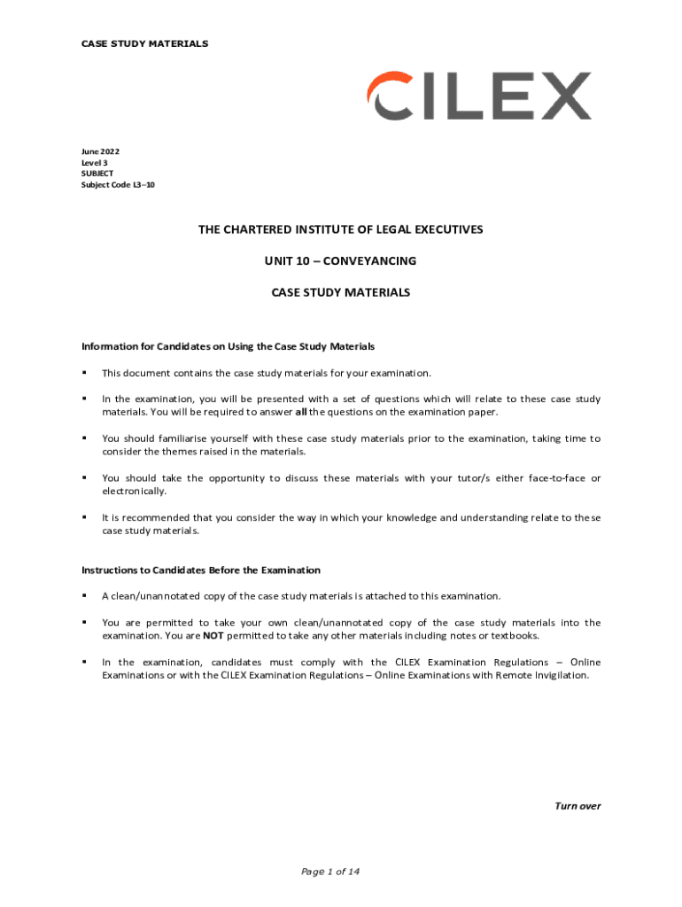 CASE STUDY MATERIALS June 2022 Level 3 SUBJECT Code L310THE CHARTERED INSTITUTE OF LEGAL EXECUTIVES UNIT 10 CONVEYANCING CASE STUDY MATERIALSInformation for Candidates on Using the Case Study Materials