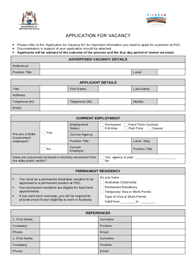 What is pdc application for vacancy .docx - Jobs WA Form?