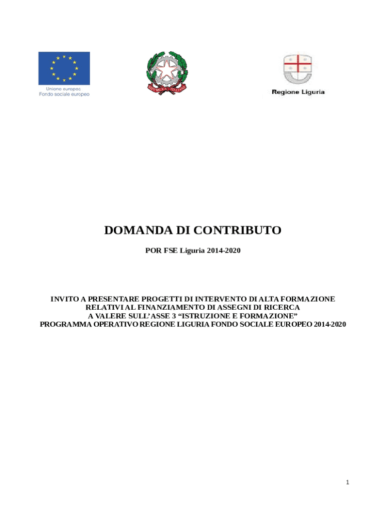 INVITO A PRESENTARE PROGETTI DI INTERVENTO DI ALTA AZIONE RELATIVI AL FINANZIAMENTO DI ASSEGNI DI RICERCA template instructions