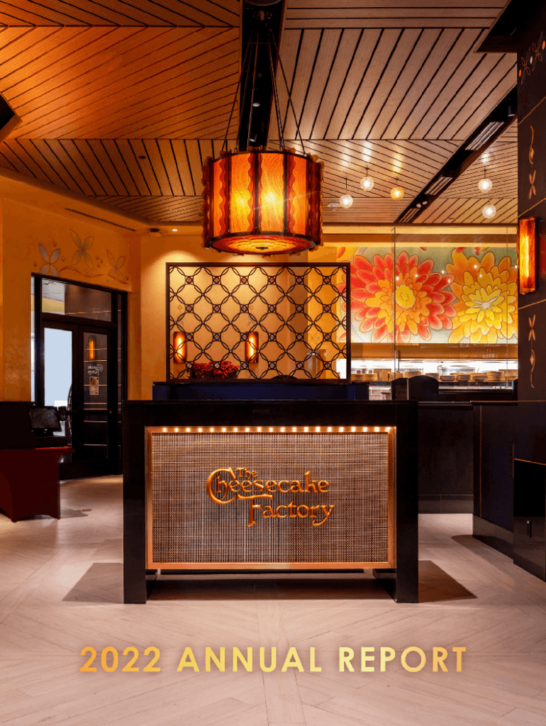 to Our Shareholders, As we reflect on the past year, we are pleased to report that The Cheesecake Factory has once again demonstrated its resilience and ability to adapt to a dynamic operating environment.