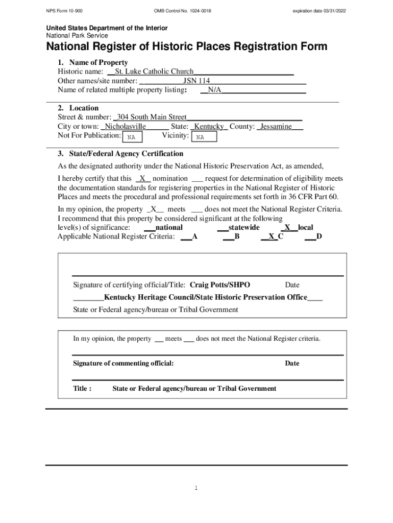 NPS Form 10900OMB Control No. 10240018expiration date 03/31/2022United States Department of the Interior